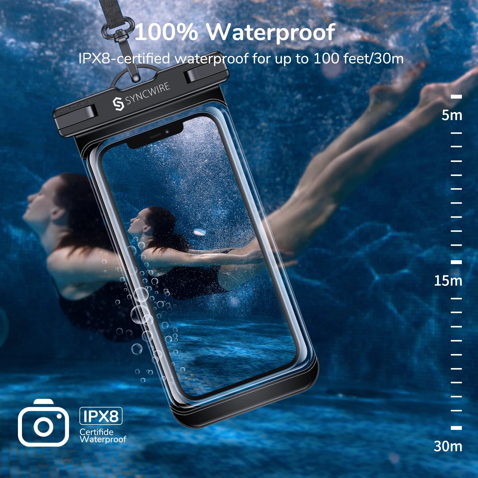 - Extra wasserdichte Versiegelung: Dank der hervorragenden Wasserdichtigkeit nach IPX8 schützt diese 100%ige Unterwasser-Handyhülle Ihre Geräte in verschiedenen Umgebungen. Die maximale Wassertiefe beträgt 30 m. Der einfache Klick- und Verriegelungszugang sorgt für perfekte Abdichtung. Schützt vor Wasser, Schnee, Staub, Sand und Schmutz.
