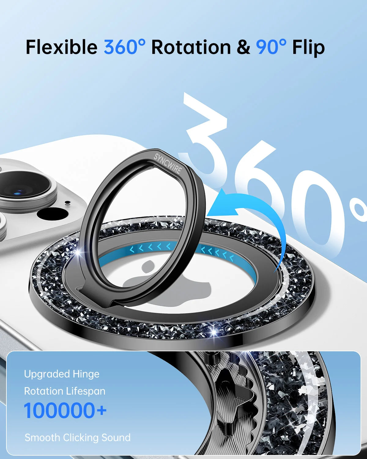 - 360°-Drehung & 90°-Spiegelung: Die mehrfache Winkelverstellung ermöglicht einen flexiblen und komfortablen Griff sowie einen optimalen Betrachtungswinkel. Dieser Ringhalter wurde auf über 6000 Faltzyklen getestet, ohne sich zu lockern, was seine Langlebigkeit deutlich erhöht.