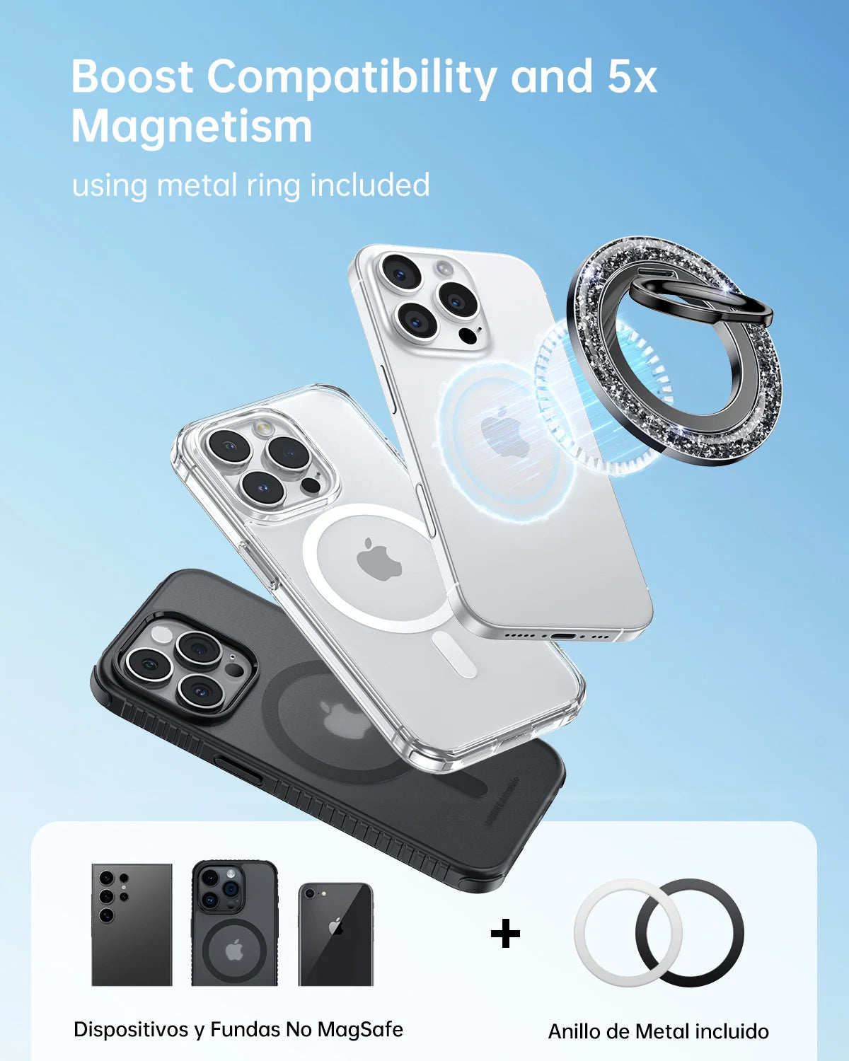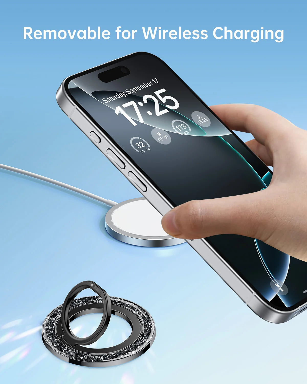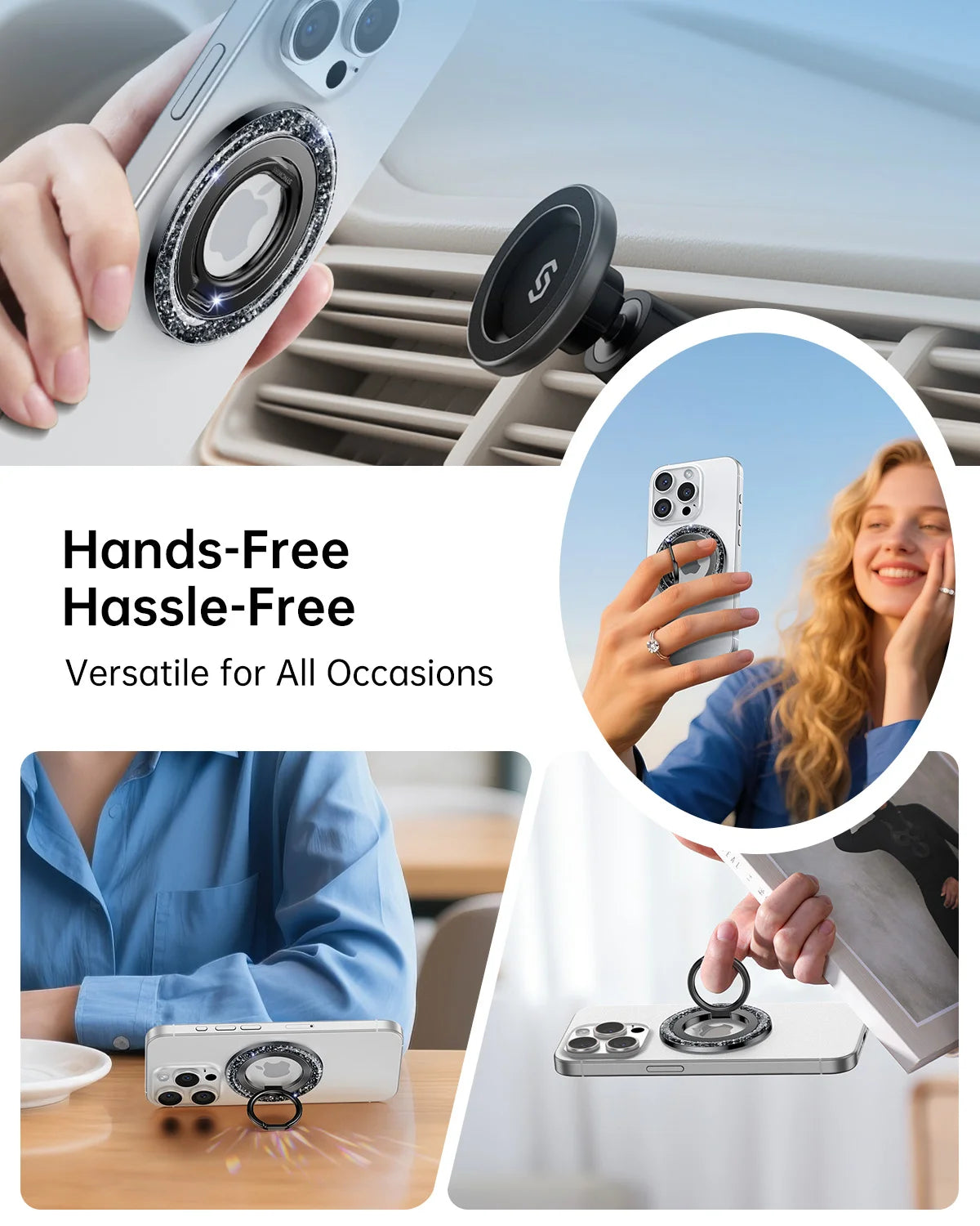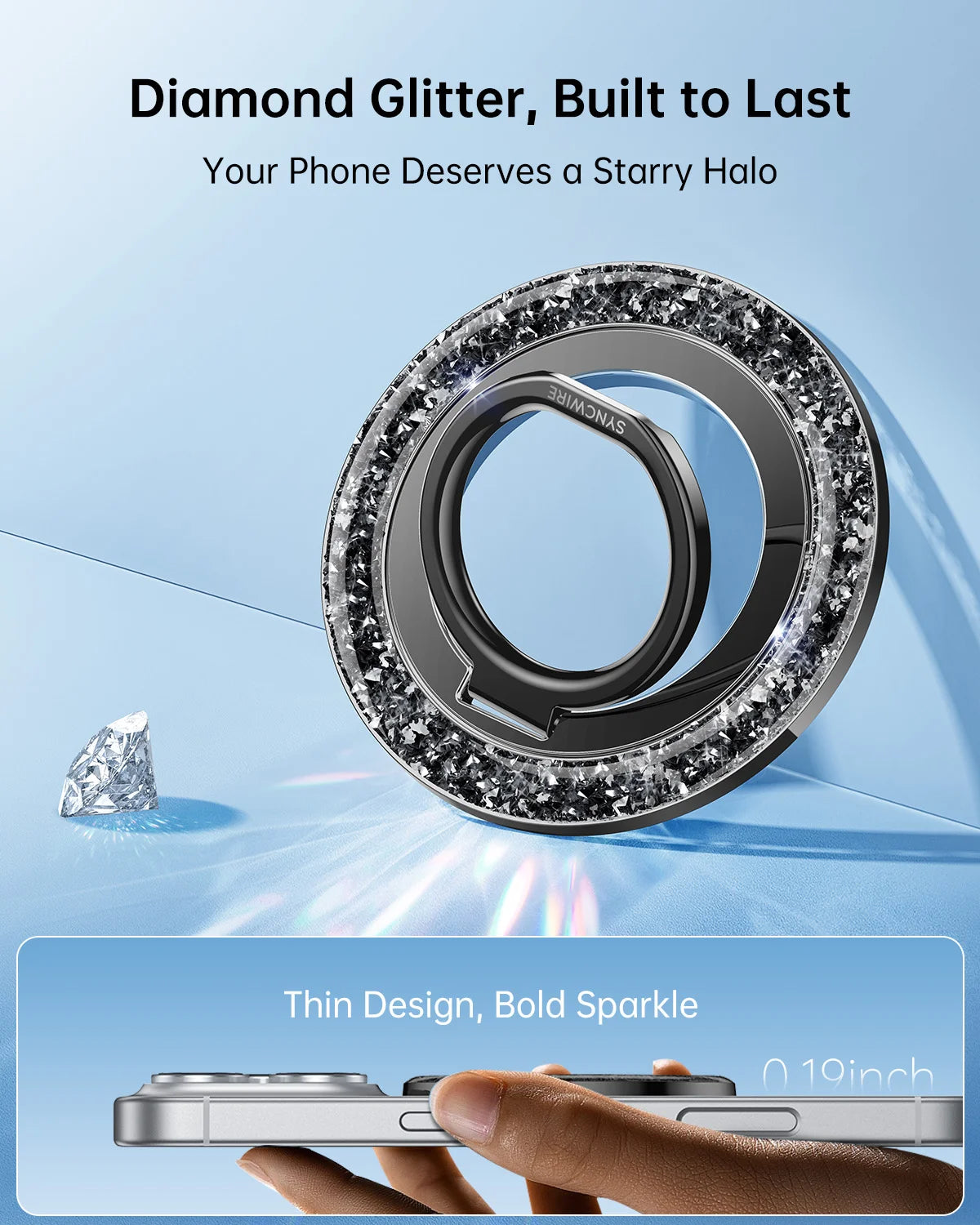 - Superstarker Magnet: Der magnetische Handyringhalter „Syncwire Glitter“ ist mit N55 NdFeB-Magneten ausgestattet und bietet eine außergewöhnliche Magnetkraft. Ihr Handy lässt sich mit nur einem Finger sicher am MagSafe-Ringhalter befestigen und sitzt fest und sicher, ohne zu wackeln oder zu verrutschen. Die Magnetkraft wird durch den mitgelieferten Metallring um das Fünffache verstärkt.